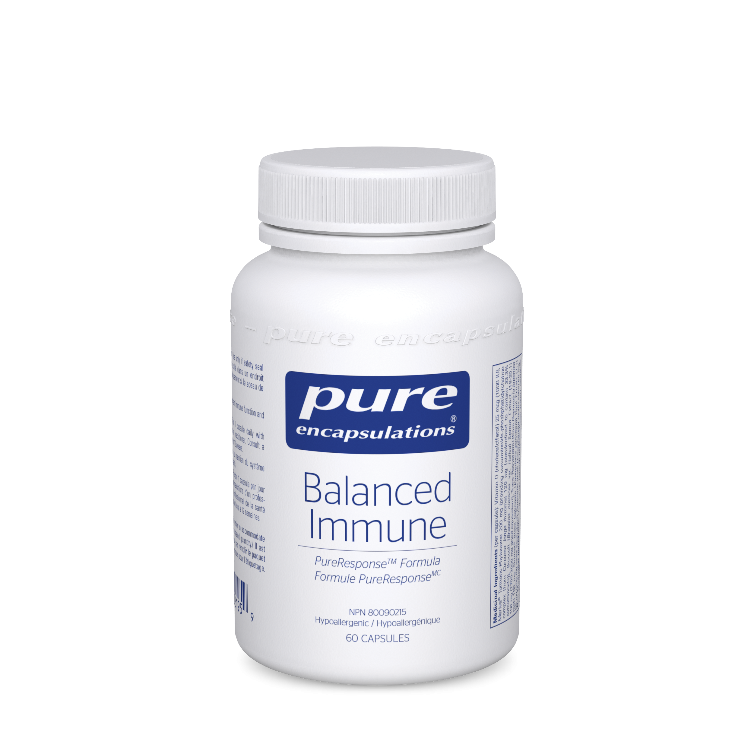 Balanced Immune est conçu pour soutenir l'équilibre immunitaire et la santé des tissus, en partie en ciblant les voies des NLRP et des NF-κB pour moduler la production de cytokine. Les NLRP (protéines réceptrices de type NOD) agissent comme des capteurs intracellulaires pour les facteurs de stress oxydatif et environnemental. Une recherche suggère que la vitamine D soutient une réaction cellulaire saine, en partie grâce à la modulation de cette voie. Cette formule fournit une protection cellulaire contre le stress oxydatif en favorisant les voies de transcription de nombreux gènes et enzymes. Le resvératrol soutient l'activité du Nrf2, un facteur de transcription qui soutient la fonction cellulaire en favorisant la protection contre le stress oxydatif. La curcumine présente dans cette formule provient du complexe breveté de curcumine-phosphatidylcholine Meriva®, étudié en clinique, qui offre une efficacité améliorée en matière d'assimilation et de résistance à la dégradation dans le tube digestif. Les données pharmacocinétiques suggèrent une assimilation 20 fois supérieure à celle de la curcumine standard. Balanced Immune contient également du brocoli, principalement reconnu pour le sulforaphane, un composant bioactif, et de l'extrait de galanga noir SIRTMAX®, qui a été étudié dans une étude croisée à double insu contrôlée par placebo.