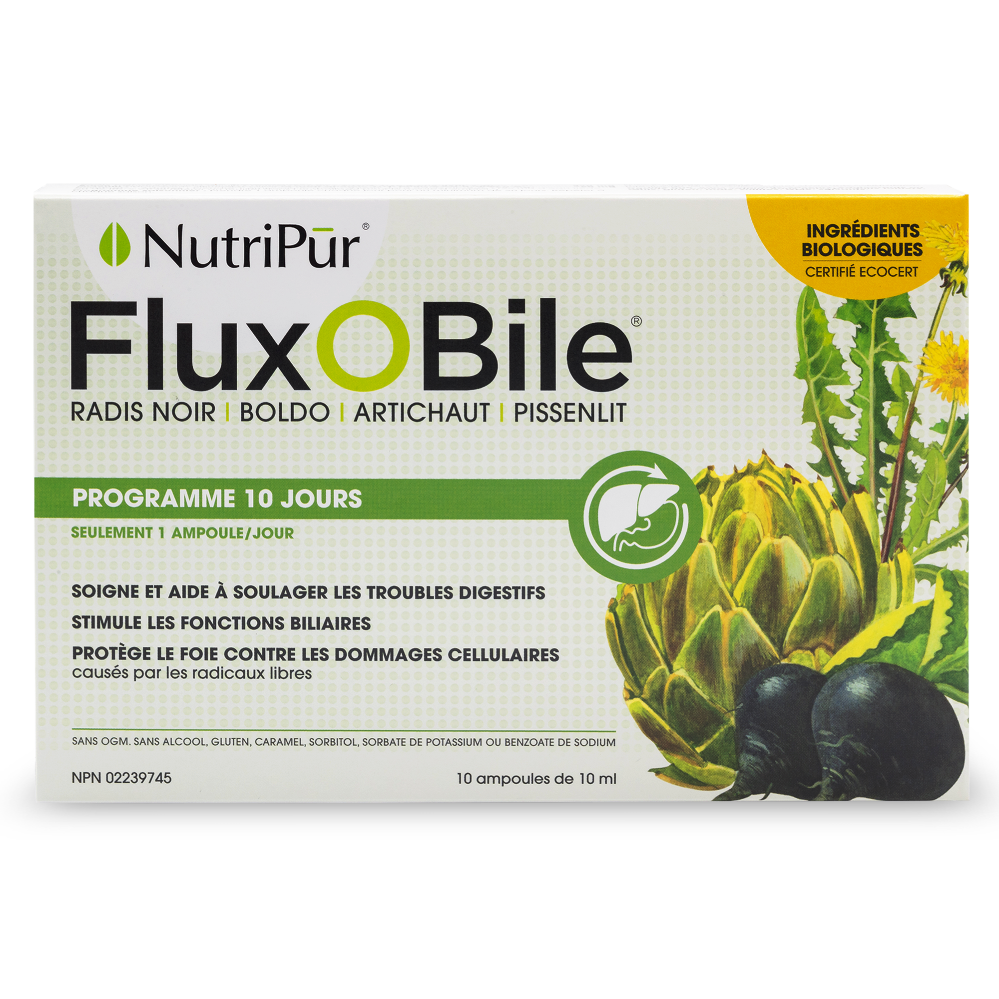 Flux-O-Bile est un programme complet pour le foie sous forme d’ampoules buvables disponible en programme de 10 ou 20 jours.