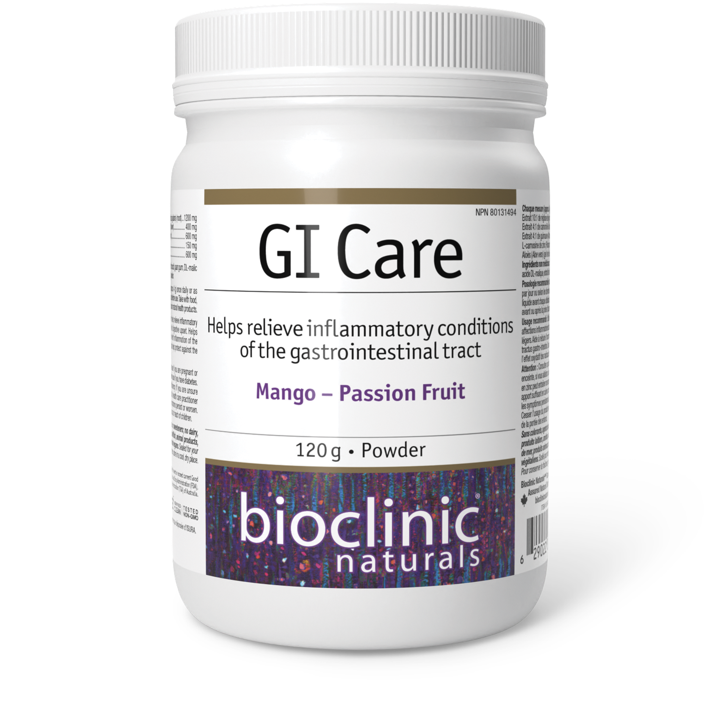 Soin GI est composé de plantes médicinales ayant fait l'objet de recherches approfondies, ainsi que d'un agent neuroprotecteur, le zinc carnosine, conçu pour favoriser la guérison et soutenir l'intégrité du tractus gastro-intestinal. Soin GI contribue à promouvoir un épithélium sain, en protégeant et en restaurant les cellules qui tapissent le tractus gastro-intestinal par de multiples voies complémentaires, y compris la réduction de l'inflammation et des troubles intestinaux complémentaires, notamment en réduisant l'inflammation et la perméabilité intestinale.