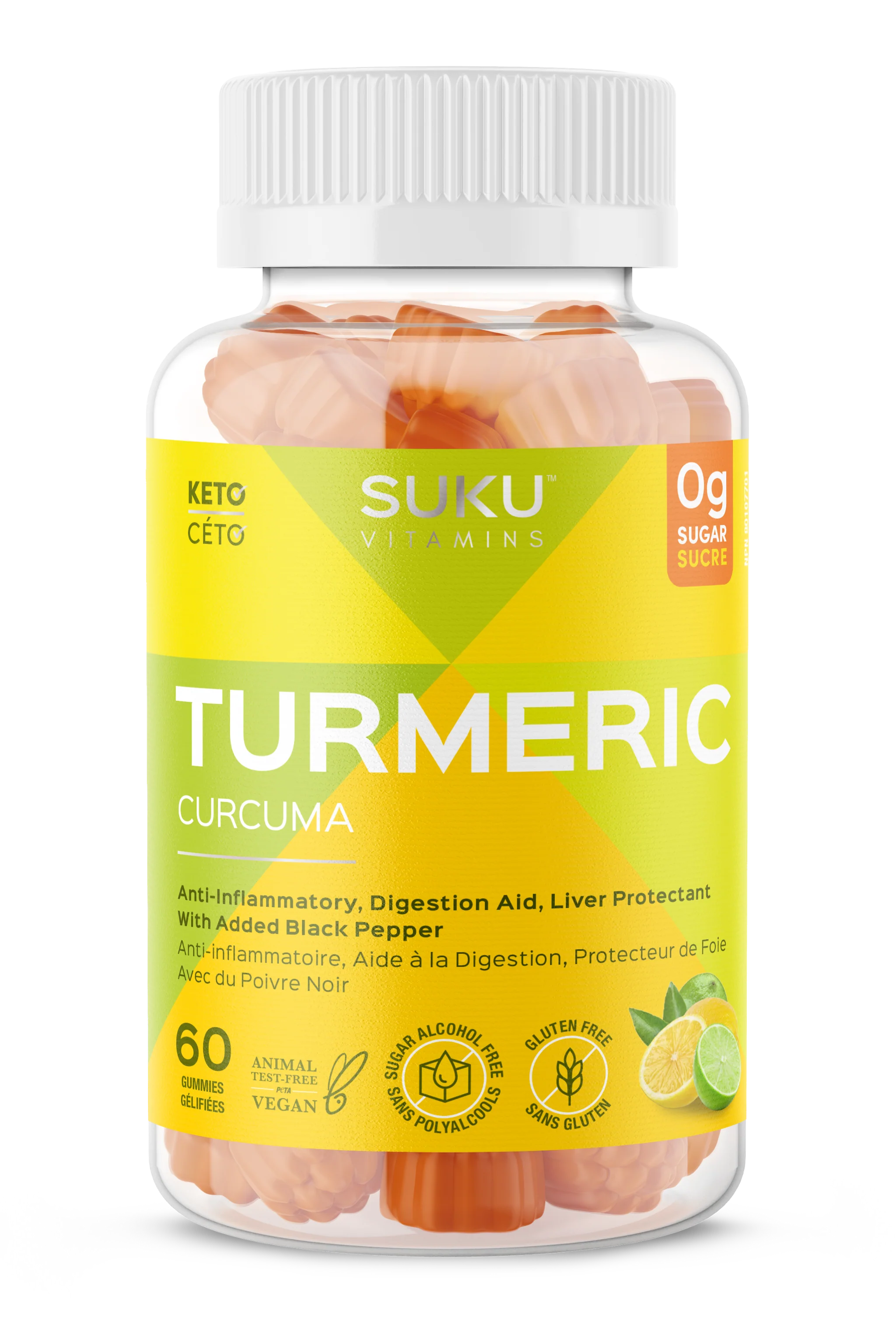 Le curcuma, grande source d'antioxydants, est utilisé en phytothérapie depuis des siècles pour ses nombreux bienfaits pour la santé. Ces gélifiés contiennent du curcuma dans son composé le plus actif, la curcumine, qui est utilisée en phytothérapie comme protecteur du foie et comme anti-inflammatoire pour aider à soulager les douleurs articulaires. Il facilite également la digestion, augmente l'excrétion de la bile par le foie et stimule la vésicule biliaire. L'ajout de poivre noir améliore l'absorption du curcuma.